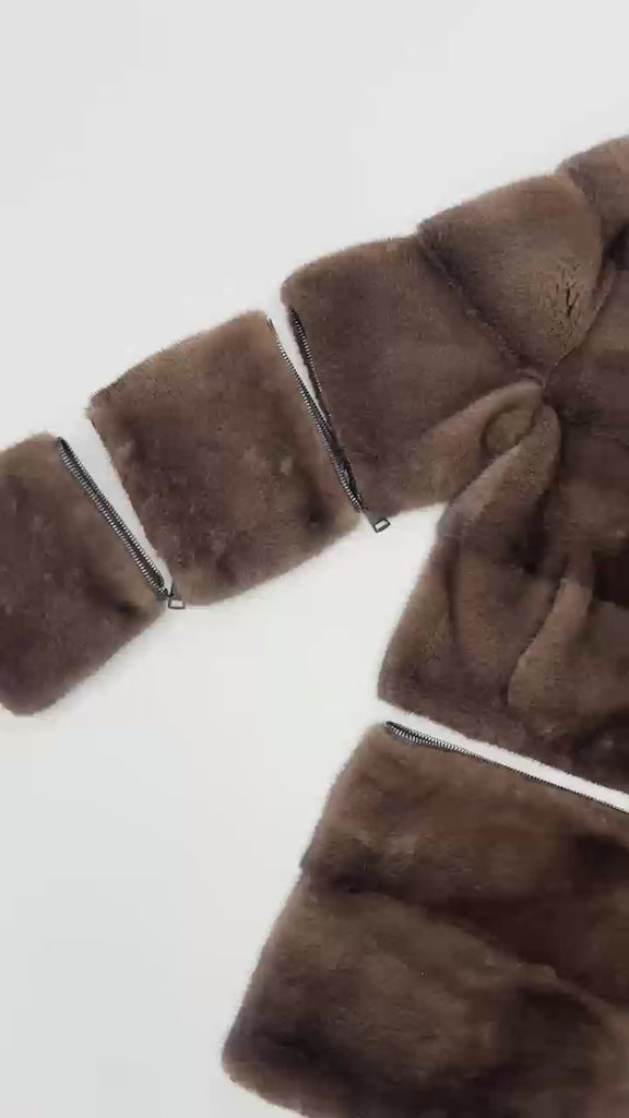 The Camelia 6 in 1 coat is made from 100% pure mink fur. You can wear this coat six different ways thanks to invisible zippers. This elegant and timeless coat is designed with a slightly looser fit on the body, making it a flattering coat on all body types.